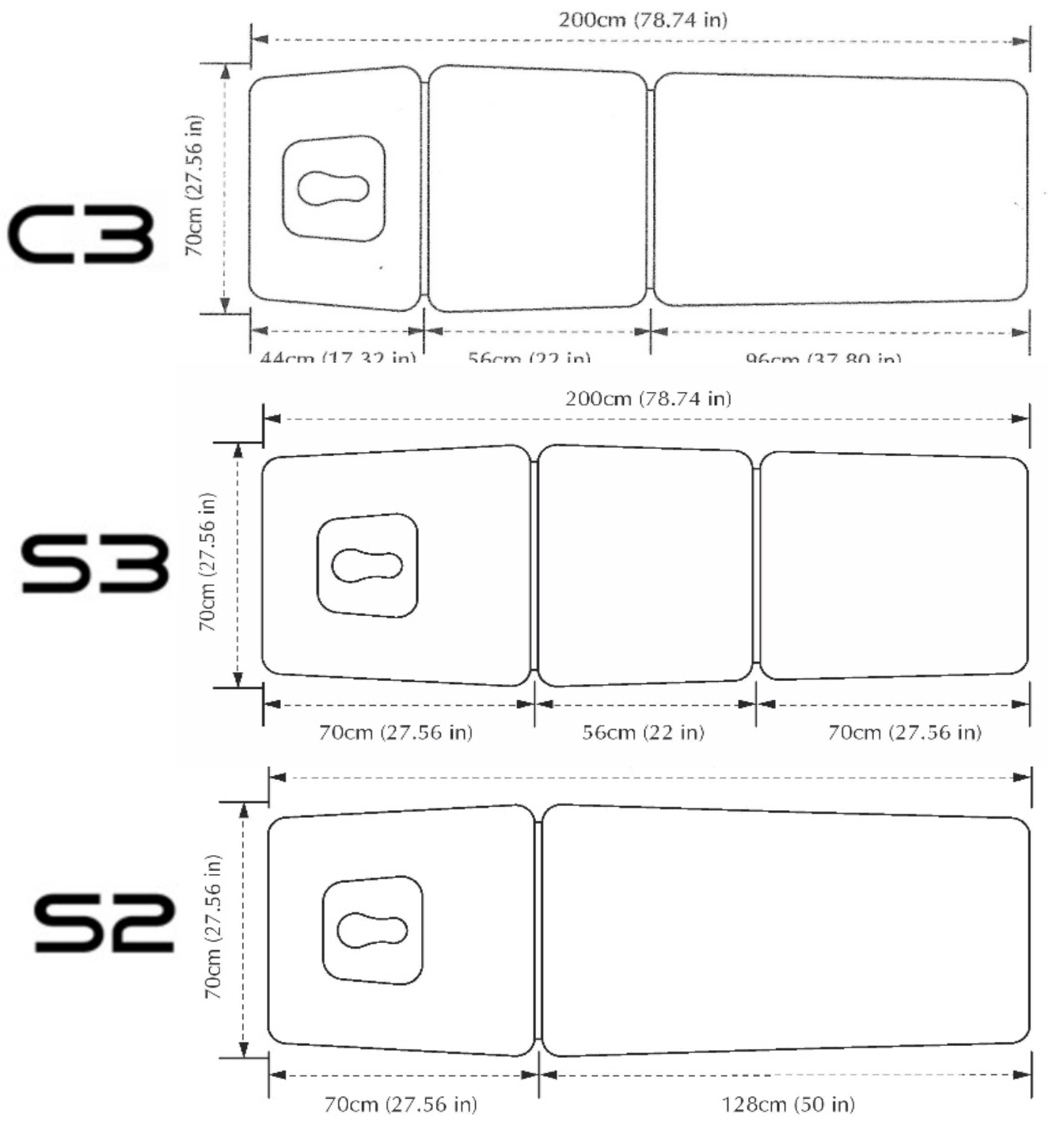 | Dimensions | Overall Length | 200cm /78.7in | 200cm /78.7in | 200cm /78.7in |